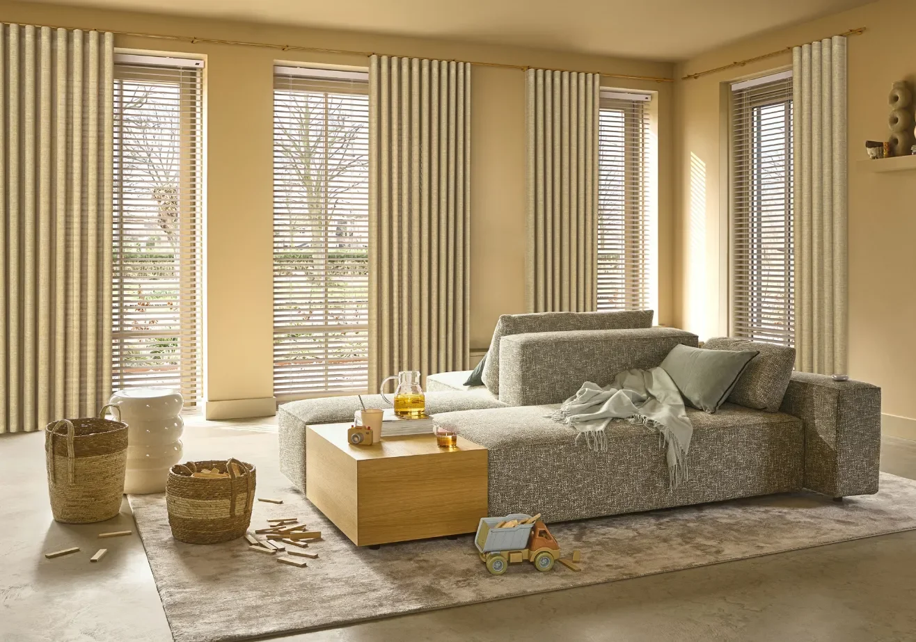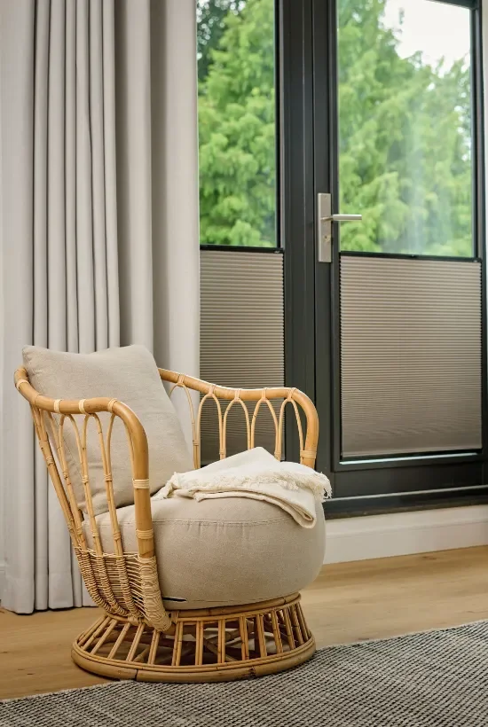 Plissé- en Duette® shades zijn ideaal als je lichtinval overdag subtiel wilt regelen. Vooral Duette® shades met een honingraatstructuur bieden goede isolatie én een moderne uitstraling. Combineer ze met lange overgordijnen voor een warme, huiselijke touch. Zo profiteer je van comfort en functionaliteit overdag, en creëer je ’s avonds een gezellige, aangeklede ruimte. Deze combinatie is bijzonder geschikt voor slaapkamers, eetkamers of kamers met veel glas.