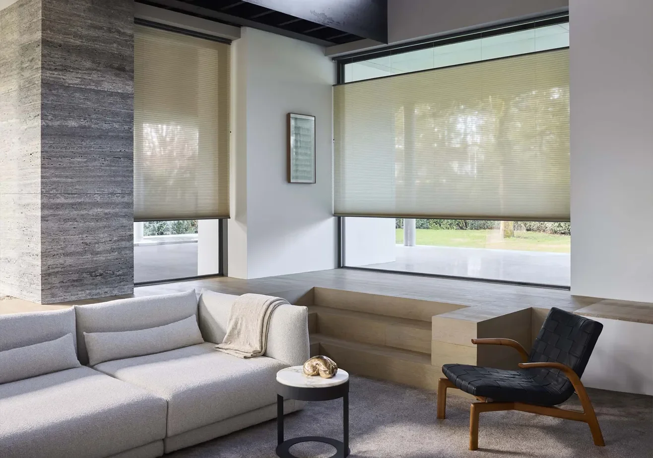 DuoMotion™ werkt samen met PowerView® automation en kan reageren op vaste tijden of zelfs op zonsopgang en zonsondergang. Zo ontstaat er vanzelf een ritme in huis. Licht en schaduw wisselen elkaar af op een manier die rust brengt en sfeer versterkt.