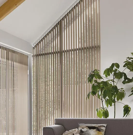 Verticale jaloezieën van Luxaflex® op maat gemaakt voor jou. Verkrijgbaar in exclusieve stijlen, duurzame materialen en geschikt voor een smarthome systeem. Dankzij hun verticale lamellen zijn ze eenvoudig te bedienen, zelfs over grote oppervlakken, en zijn ze ideaal voor ruimtes waar volledige privacy en lichtcontrole gewenst zijn. Deze jaloezieën zijn perfect voor speciale raamvormen, wat ze een veelzijdige keuze maakt voor elk interieur.