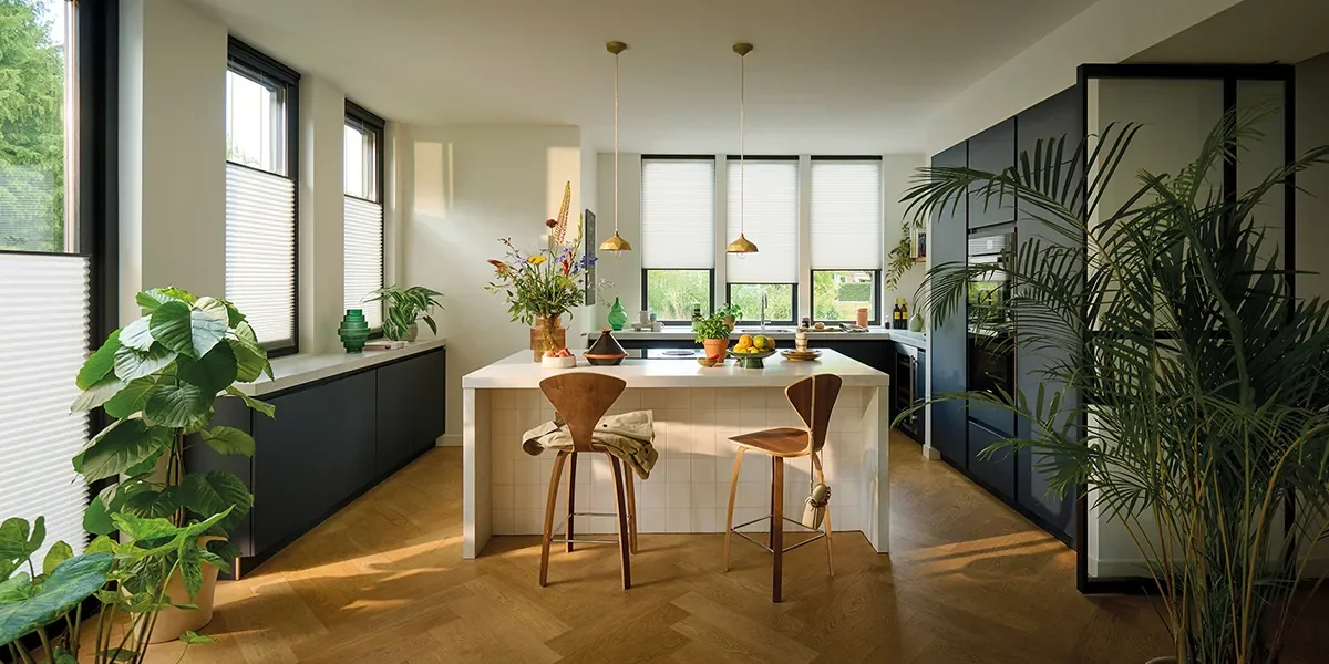 Duette® shades bieden optimale lichtregeling en energie-efficiëntie in huis, het hele jaar door. De Duette® Shade creëert een isolerende luchtlaag die helpt kamers warmer te houden in de winter en koeler in de zomer, wat kan bijdragen aan een lagere energierekening. Elke Duette® Shade wordt op maat gemaakt en combineert stijl met superieur vakmanschap, waardoor ze naadloos passen bij jouw specifieke wensen en stijlvoorkeuren.